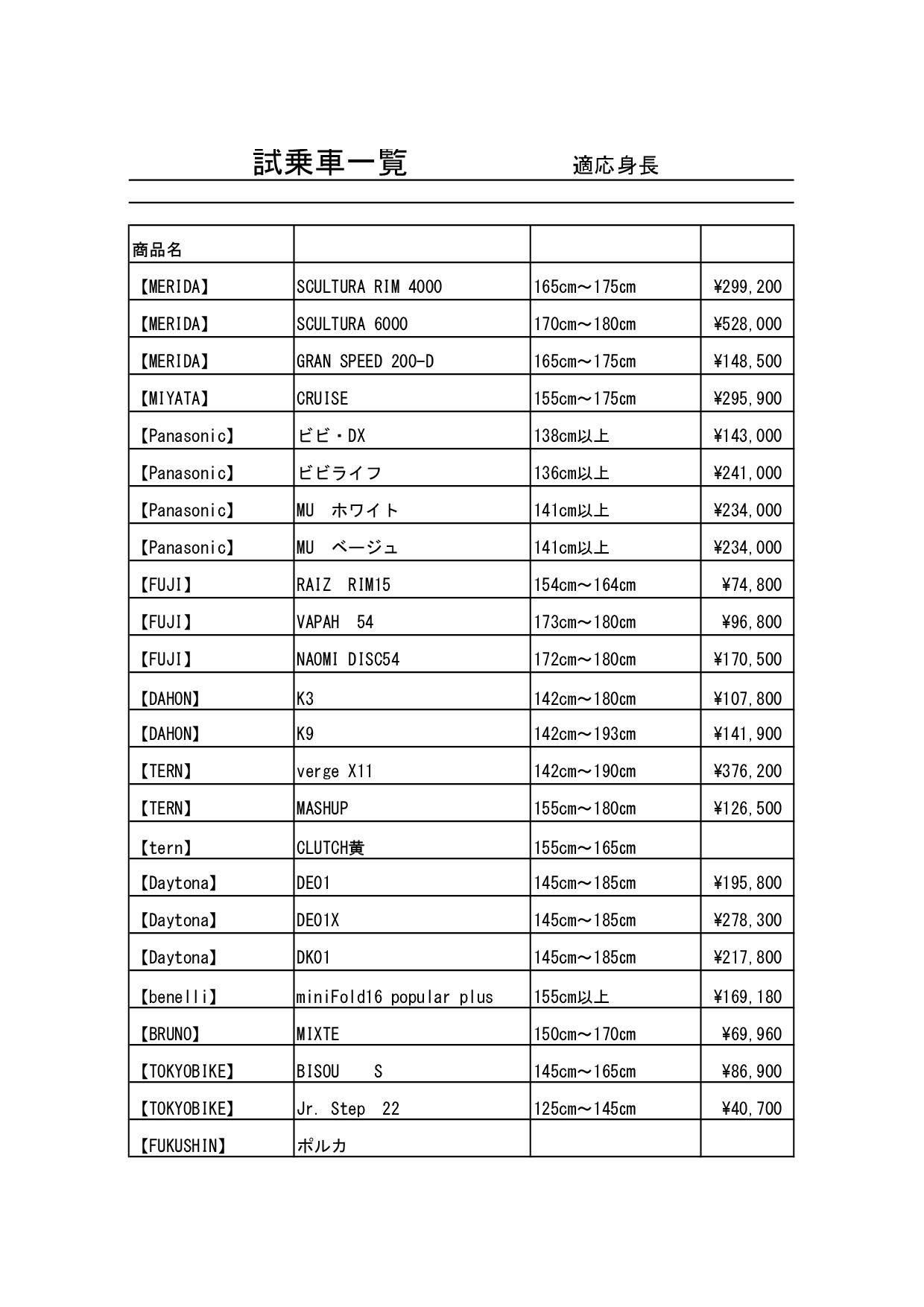 ロードバイク、クロスバイクから電動アシスト付き自転車、シニアカーまで様々な車種を体験することができます! ※各車種により適応身長が異なりますので、ご注意ください